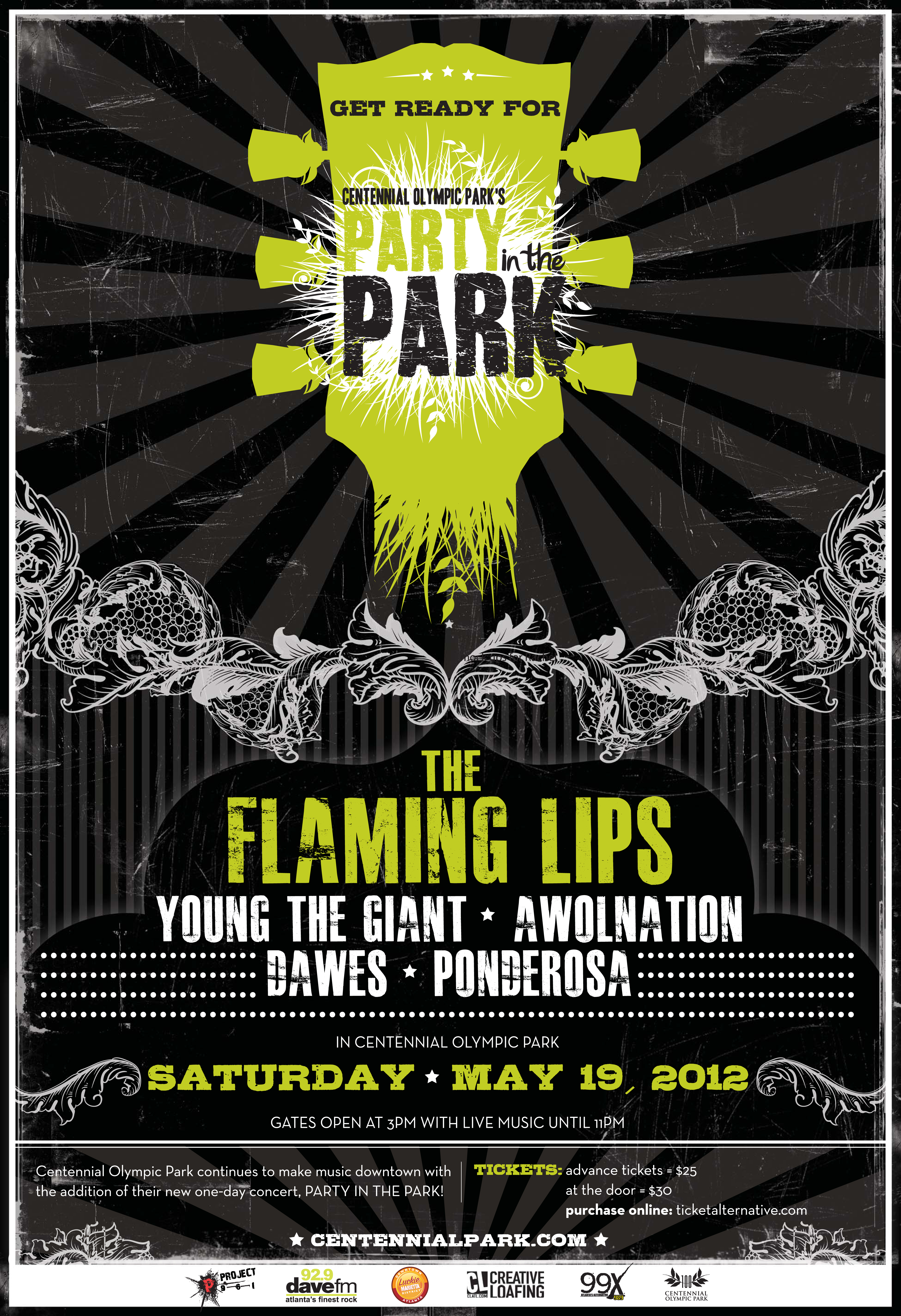 Party In The Park 2012 Centennial Olympic Park Saturday May 19, 2012 Party In The Park 2012 The Flaming Lips, Young The Giant, AWOLNATION, Dawes, Ponderosa May 19, 2012 Centennial Olympic Park