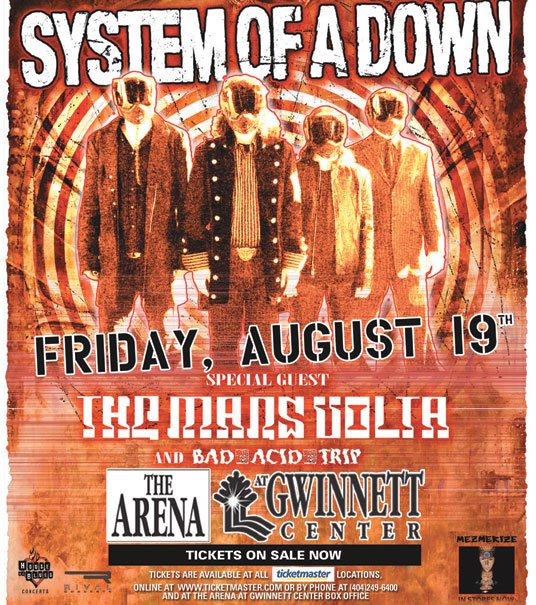 System Of A Down The Arena at Gwinnett Center Friday August 19, 2005 System of A Down with special guest The Mars Volta Friday, August 19, 2005 The Arena at Gwinnett Center